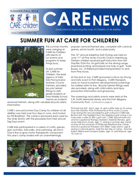 In The News - For the most current news, check out the great things that are happening at CARE for Children